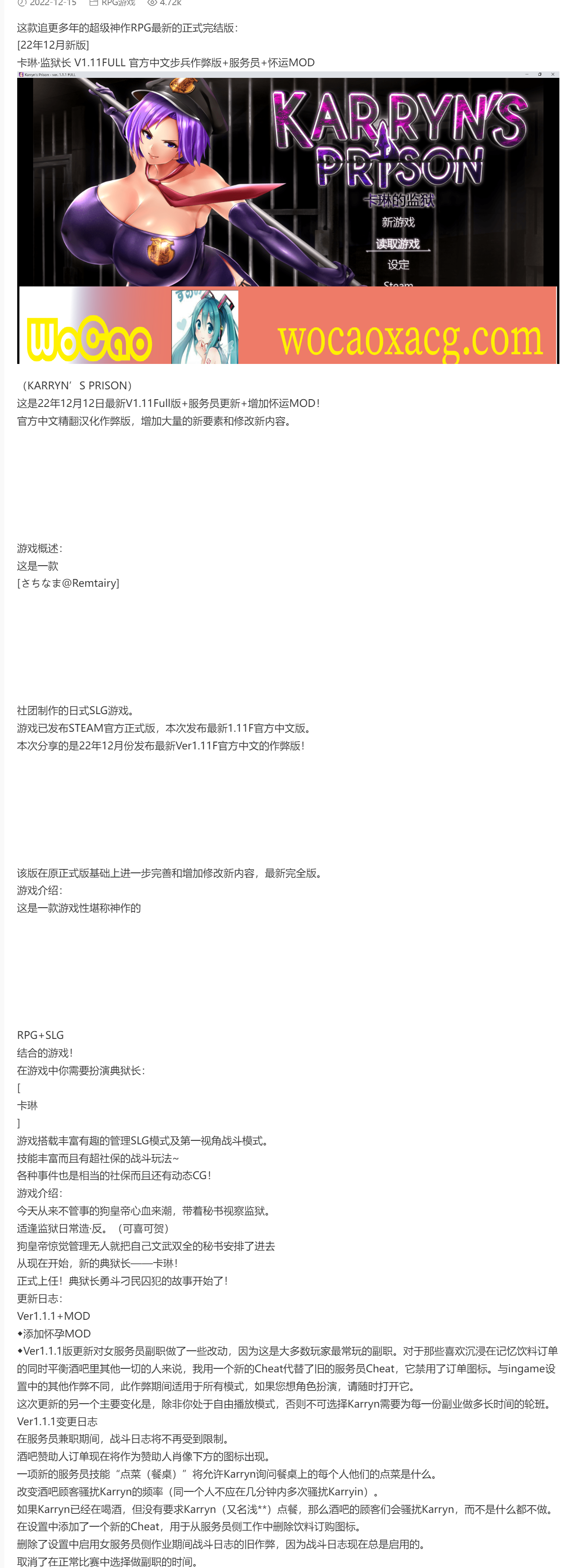 [爆款RPG/汉化/动态]卡琳·监狱长 Ver1.11F 官中步兵版+服务员+怀运MOD[新版/2G]/年费会员专享』