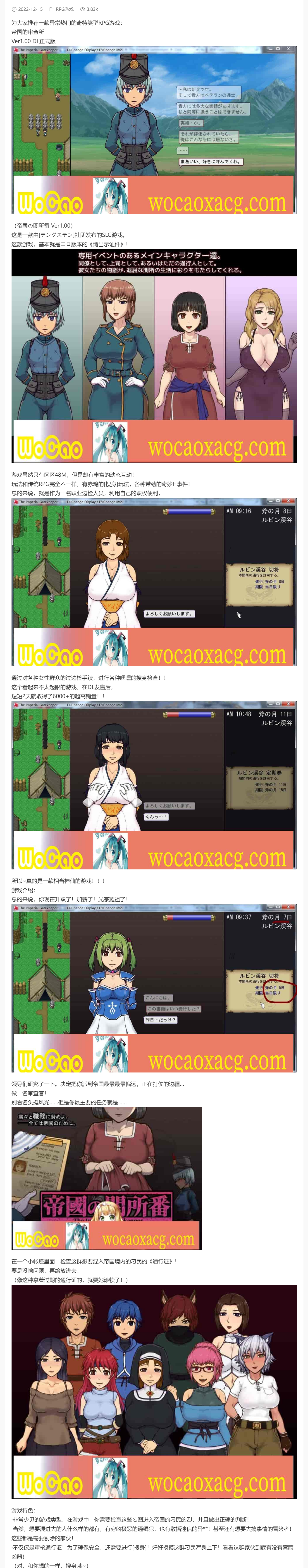 [RPG/动态CG]帝国的审查所:帝國の関所番 DL正式版[百度][H版请出示证件/50M]』
